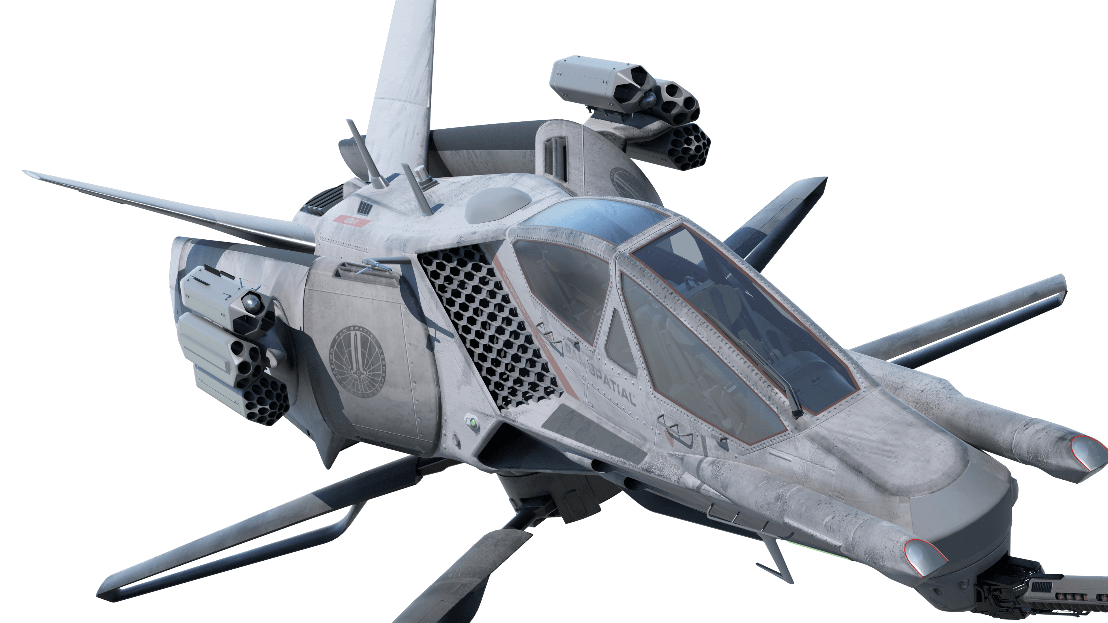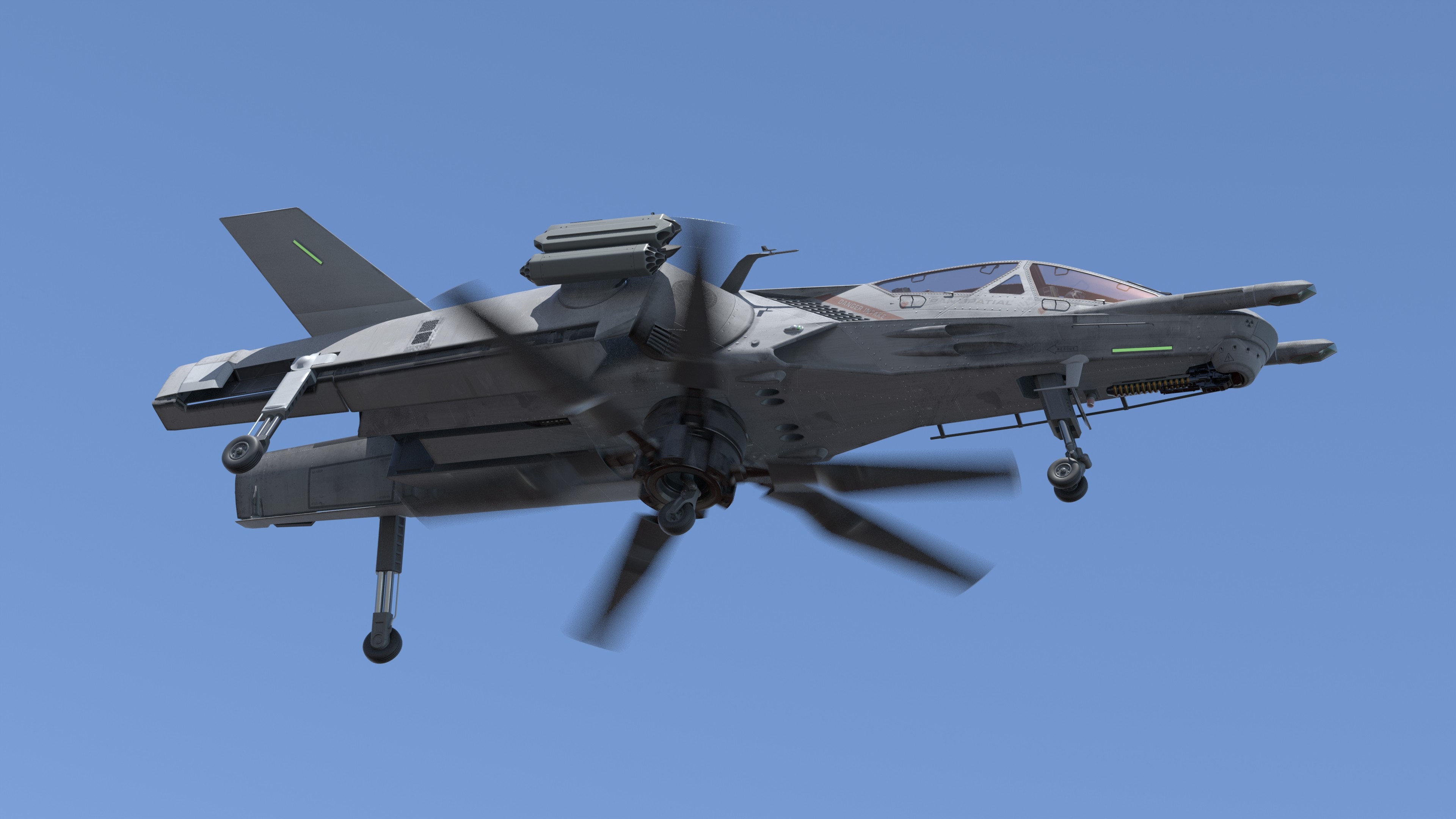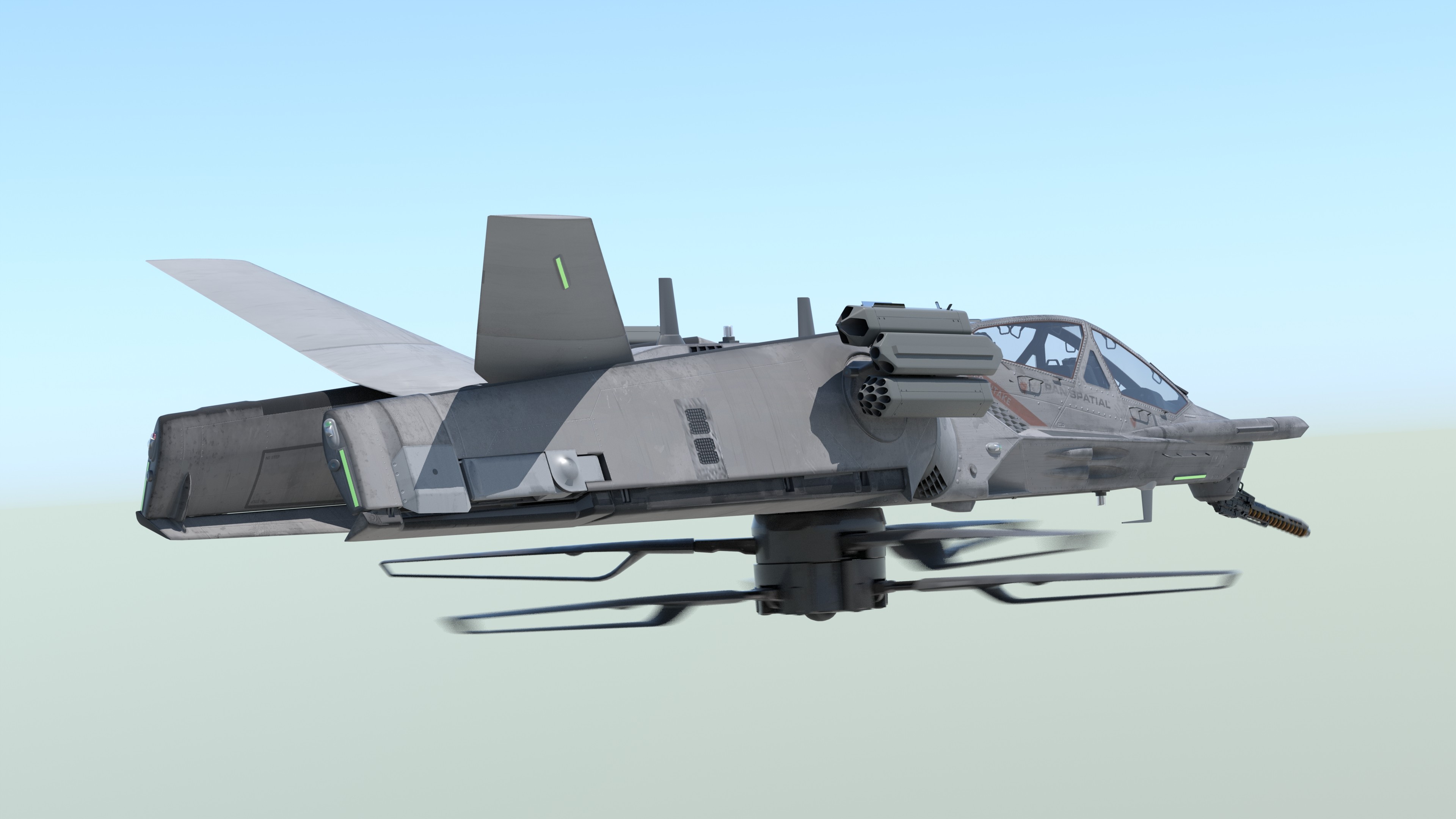 VTOL Close Air Support Vehicle that dramatically tansforms from a conventional fixed-wing aircraft to a helicopter with the main rotor underneath the aircraft. Dragonwing Mk.1 was first published almost ten years ago (see seperate entry). Mk.2 was inporved and adapted for play in Modern Warships. Controversial design and hyper-clever technical integration will make Dragonwing a hard to beat concept design for many years to come.