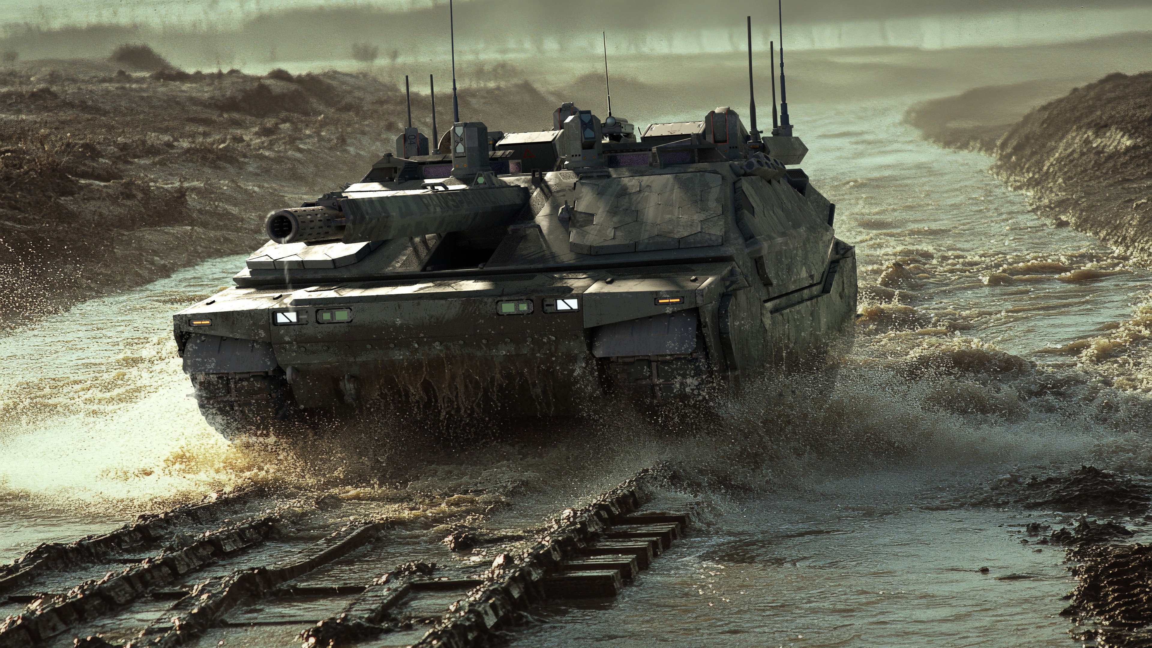 Modern system concepts in a retro-vibe package. Symmetrical forward and aft configuration reduces the complexity and cost of manufacture. Full-body reactive armor utilizes only one size and shape of armor - again reducing the complexity and cost of full-body armor on a main battle tank. Extendable auto-canon helps maintain a low profile during rapid transits.