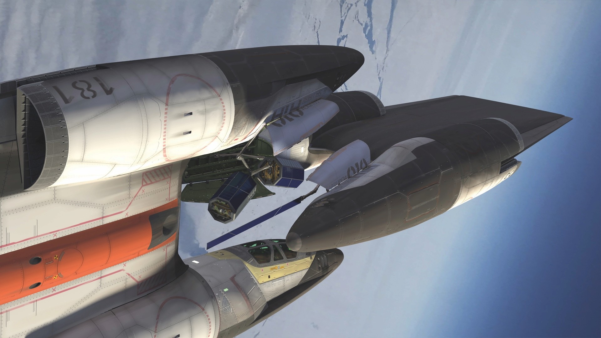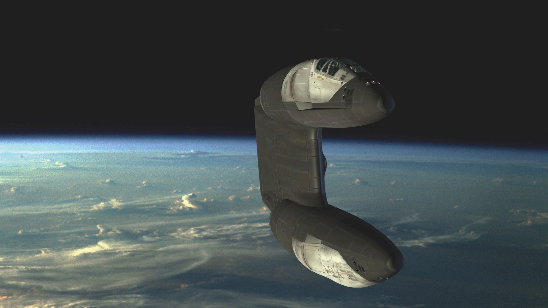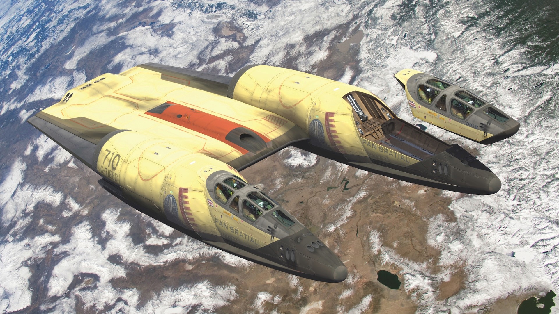 The first Pan Spatial spacecraft, published in 2018. Original variable geometry facilitates dramatic launch and recovery sequences, as well as mission performance in orbit.