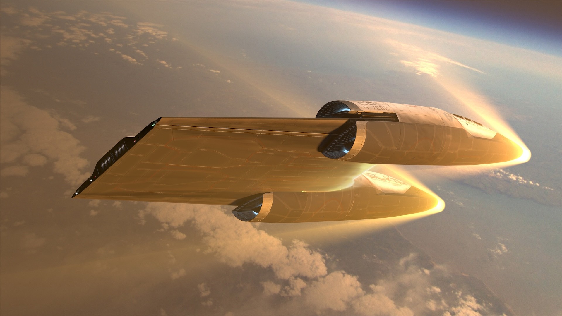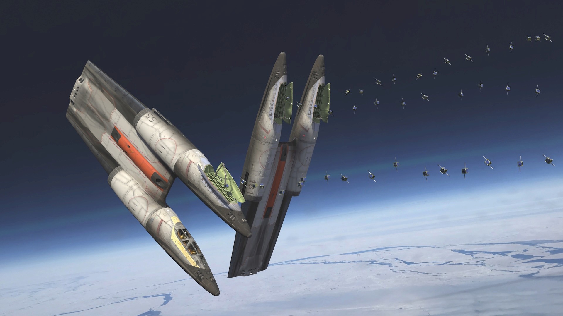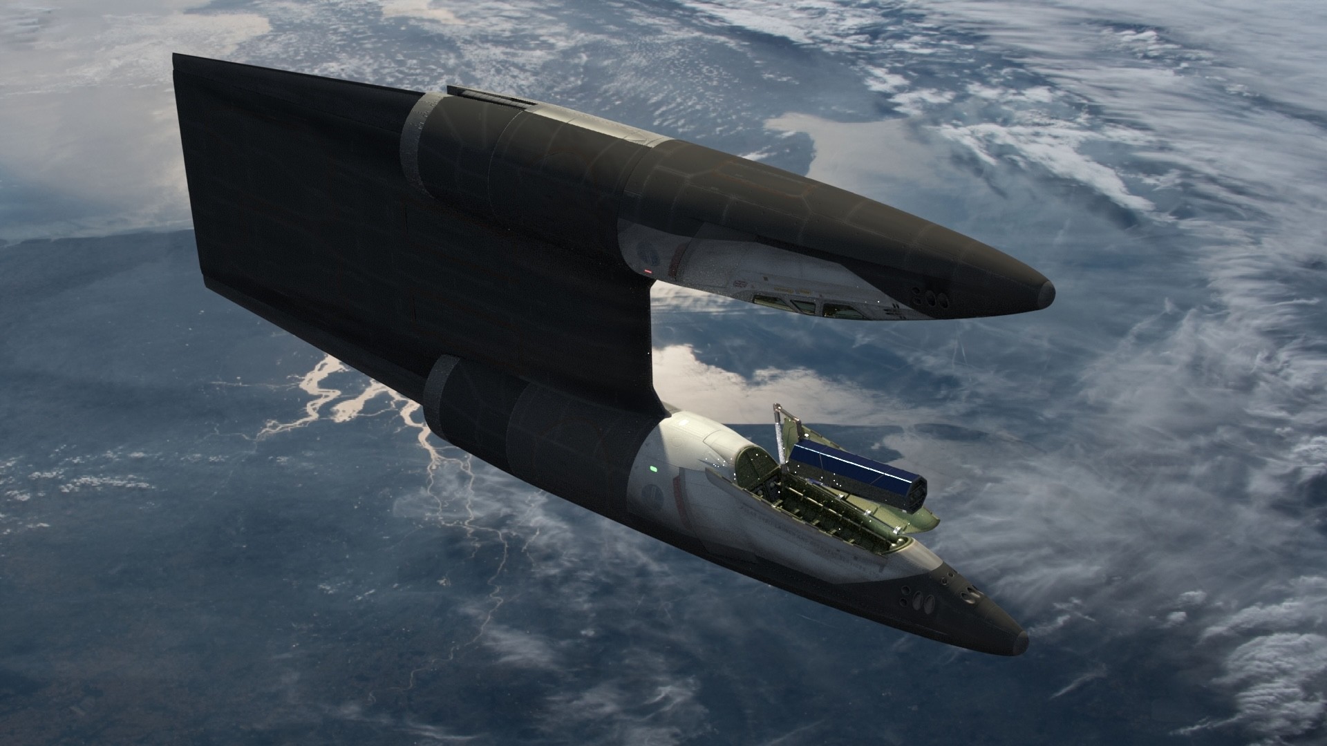 The first Pan Spatial spacecraft, published in 2018. Original variable geometry facilitates dramatic launch and recovery sequences, as well as mission performance in orbit.