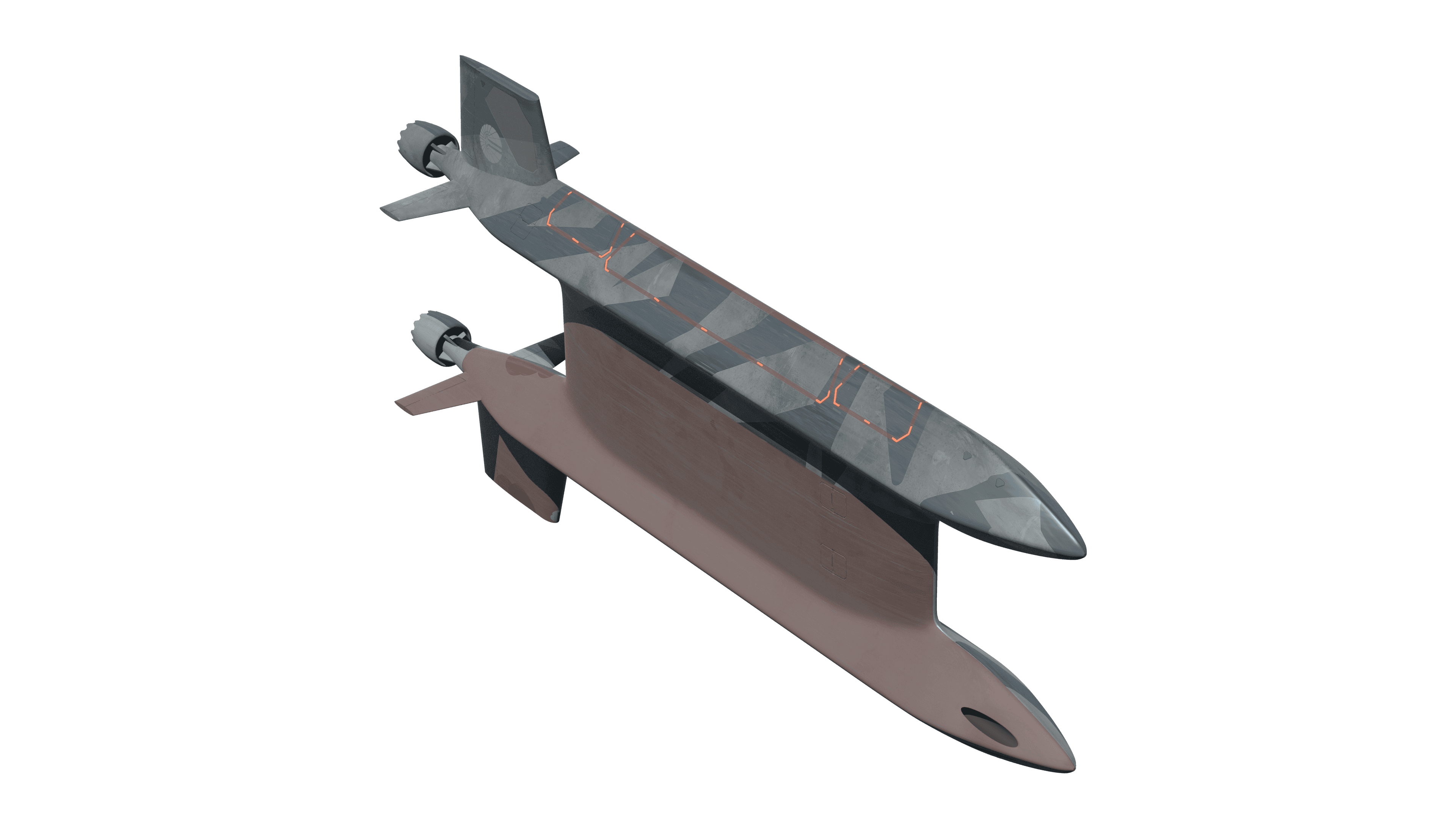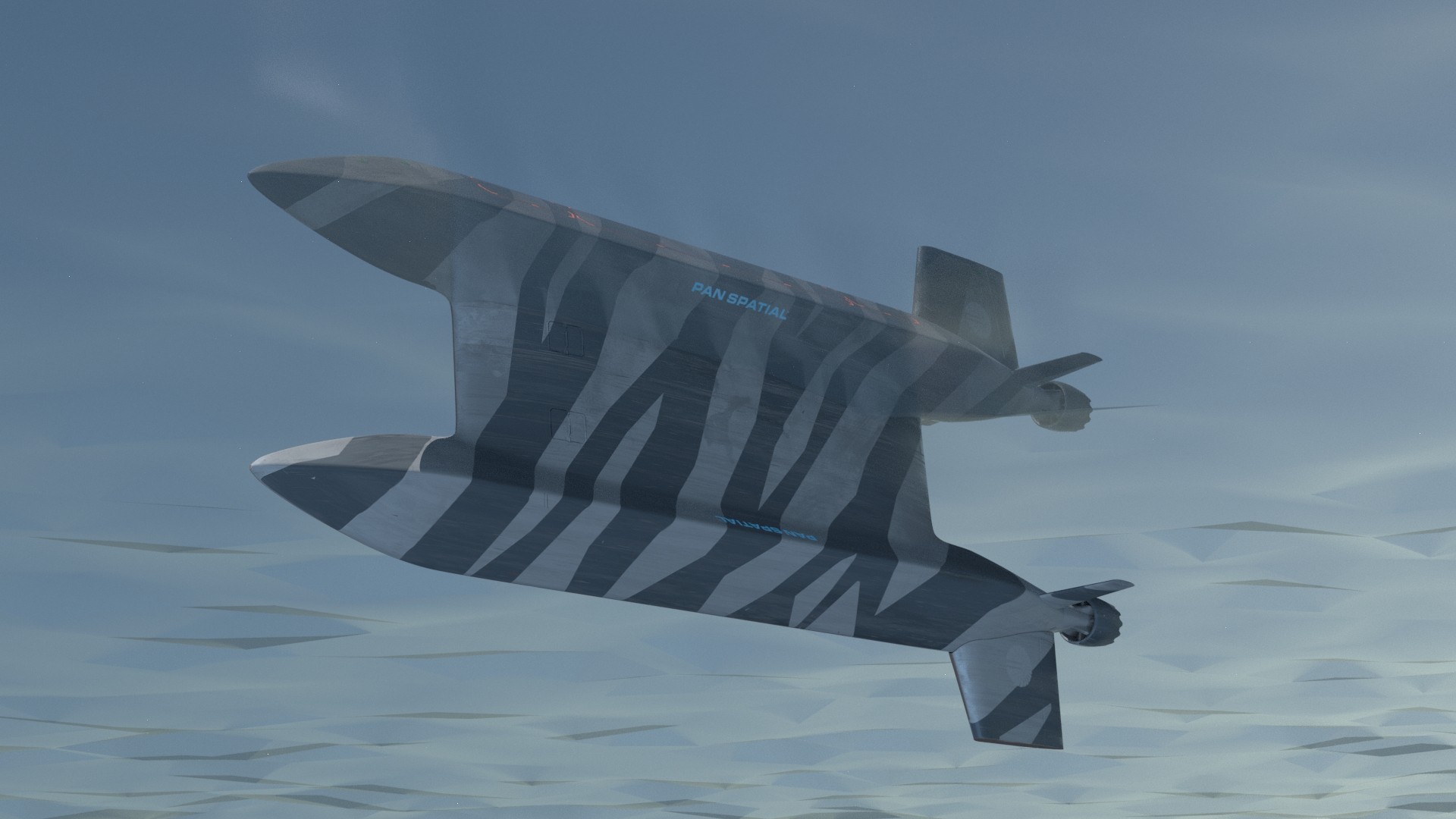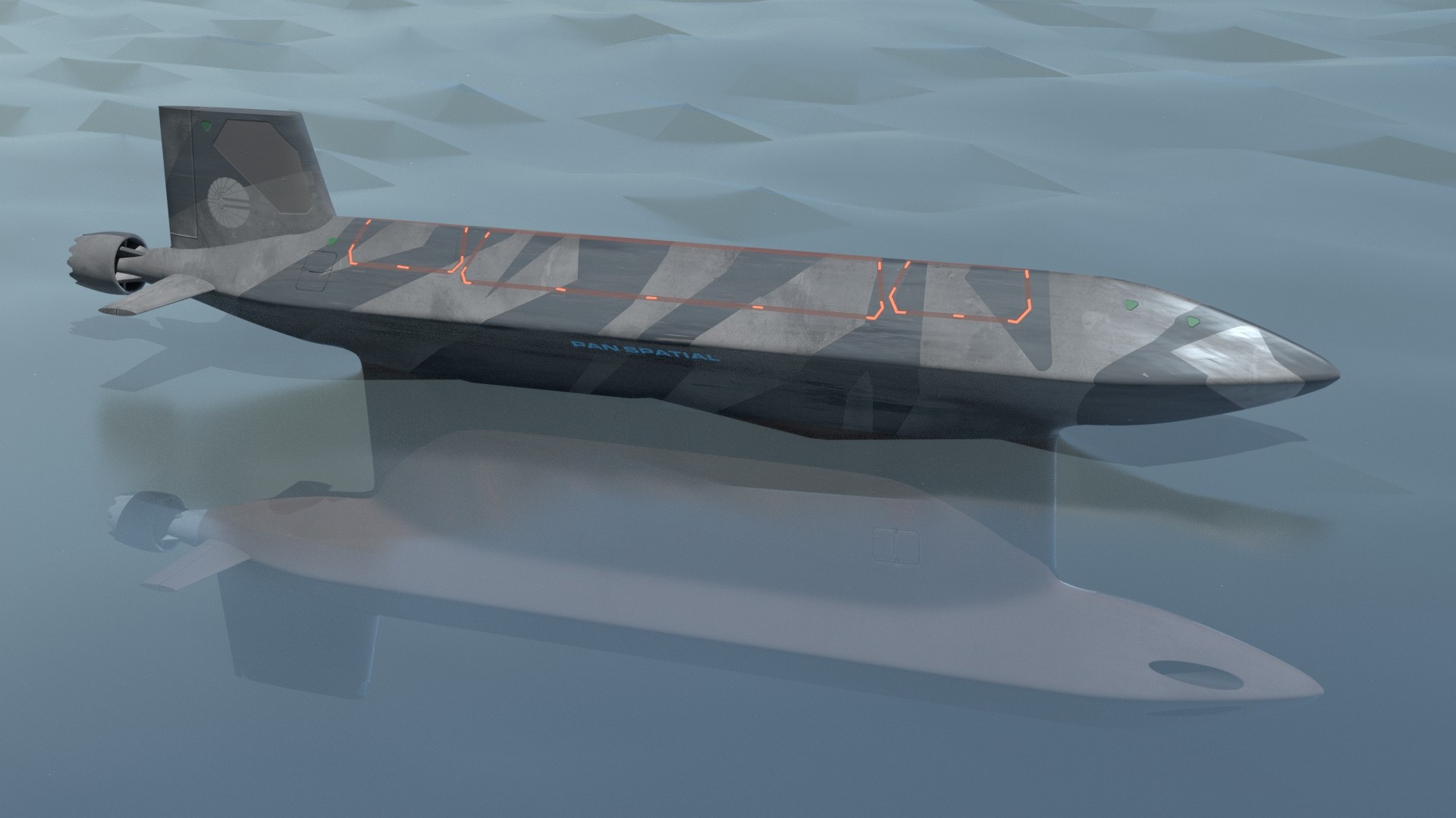 Original small-scale variable geometry submarine. Capable of transiting very shallow water or very close to sea-floor. Vertical Launch System can be utilized when normal depth water is reached.