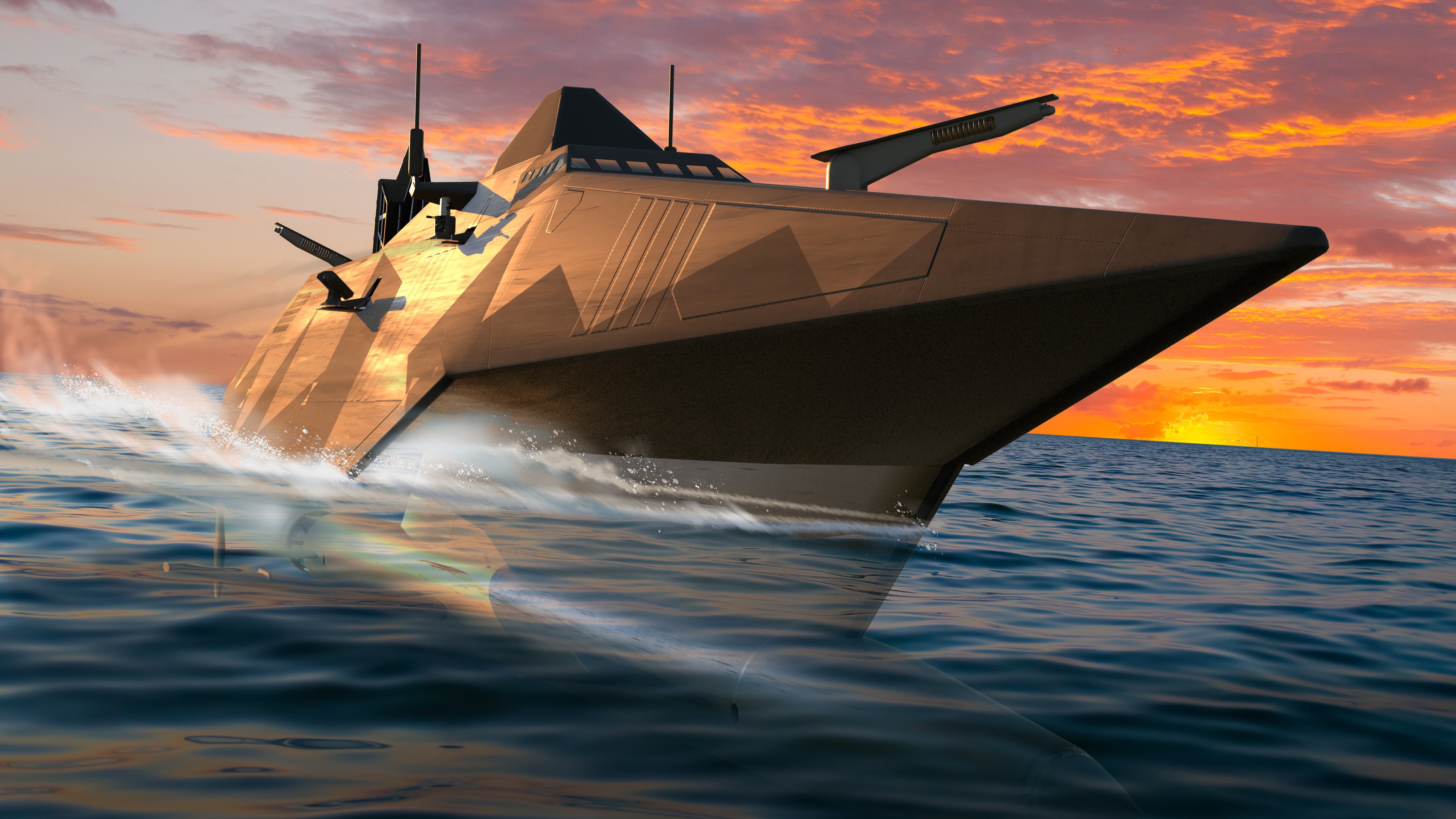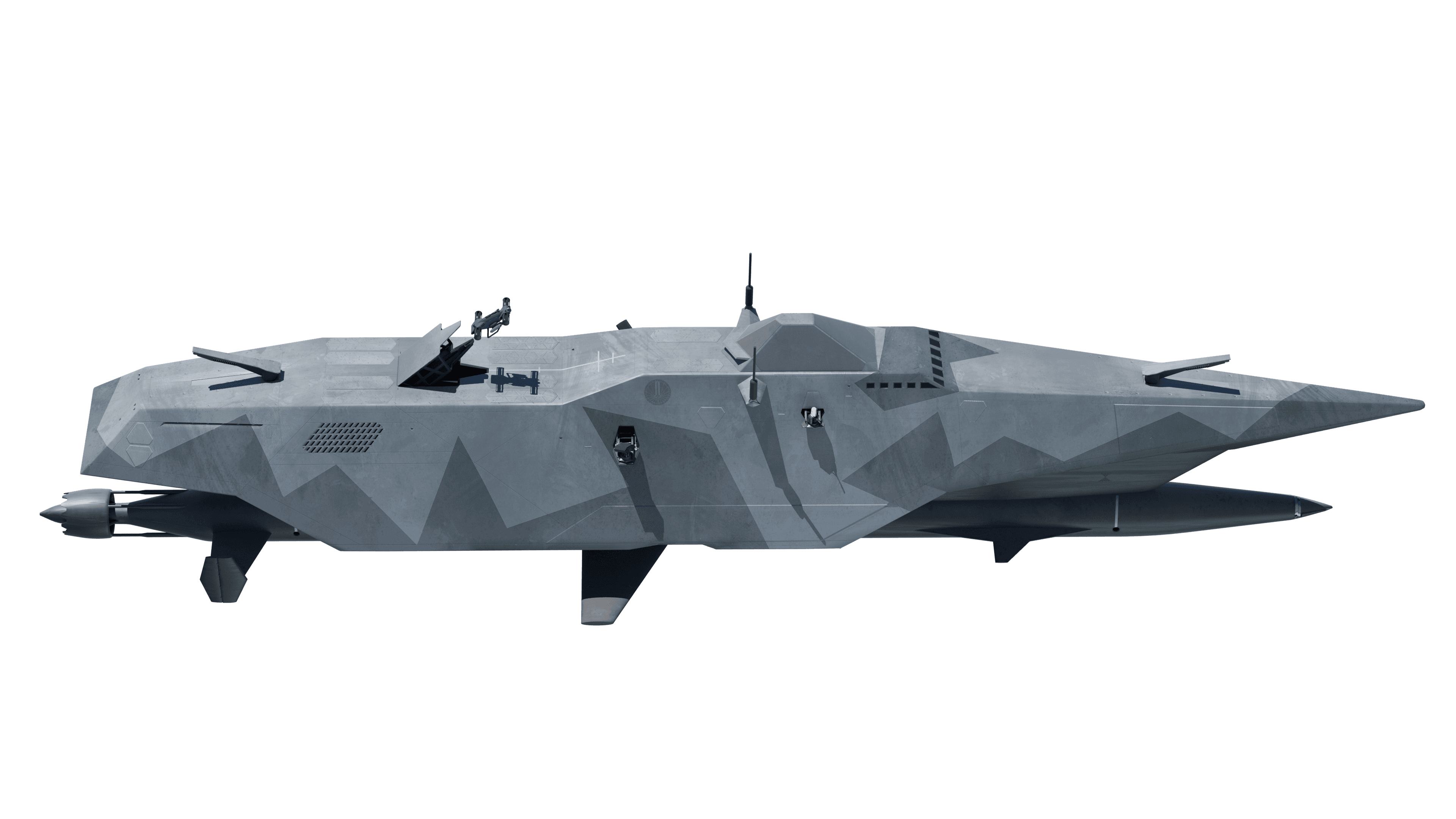 One of the first and most popular Pan Spatial ships in Modern Warships. Unique extendable buoyancy and hydroplane system gives it tremendous speed and maneuverability for a ship packing a large Gauss Gun, large calibre grenade systems, and large-scale attack drones.